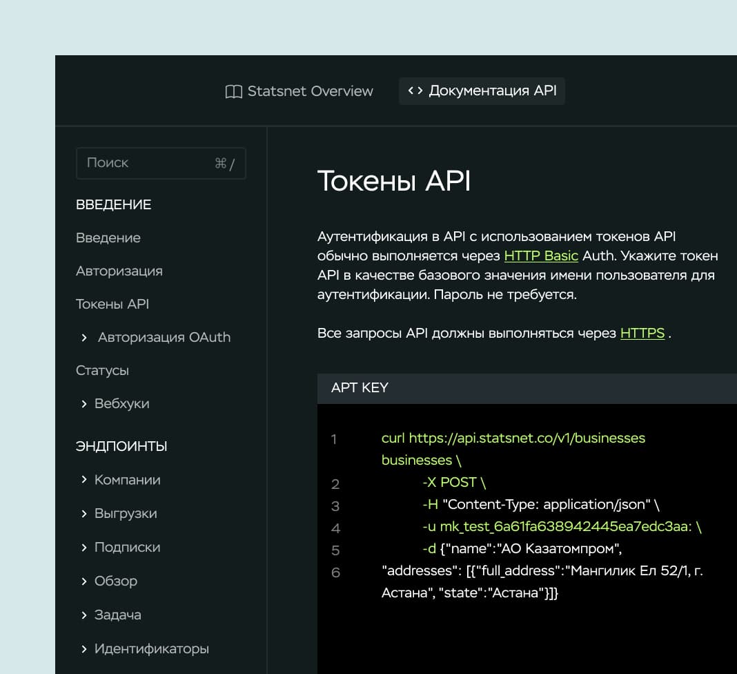 Statsnet объединяет сотни общедоступных источников данных, включая регистрационные и налоговые данные, для обеспечения мгновенной проверки предприятий Казахстана. Просматривайте данные через сайт или API.